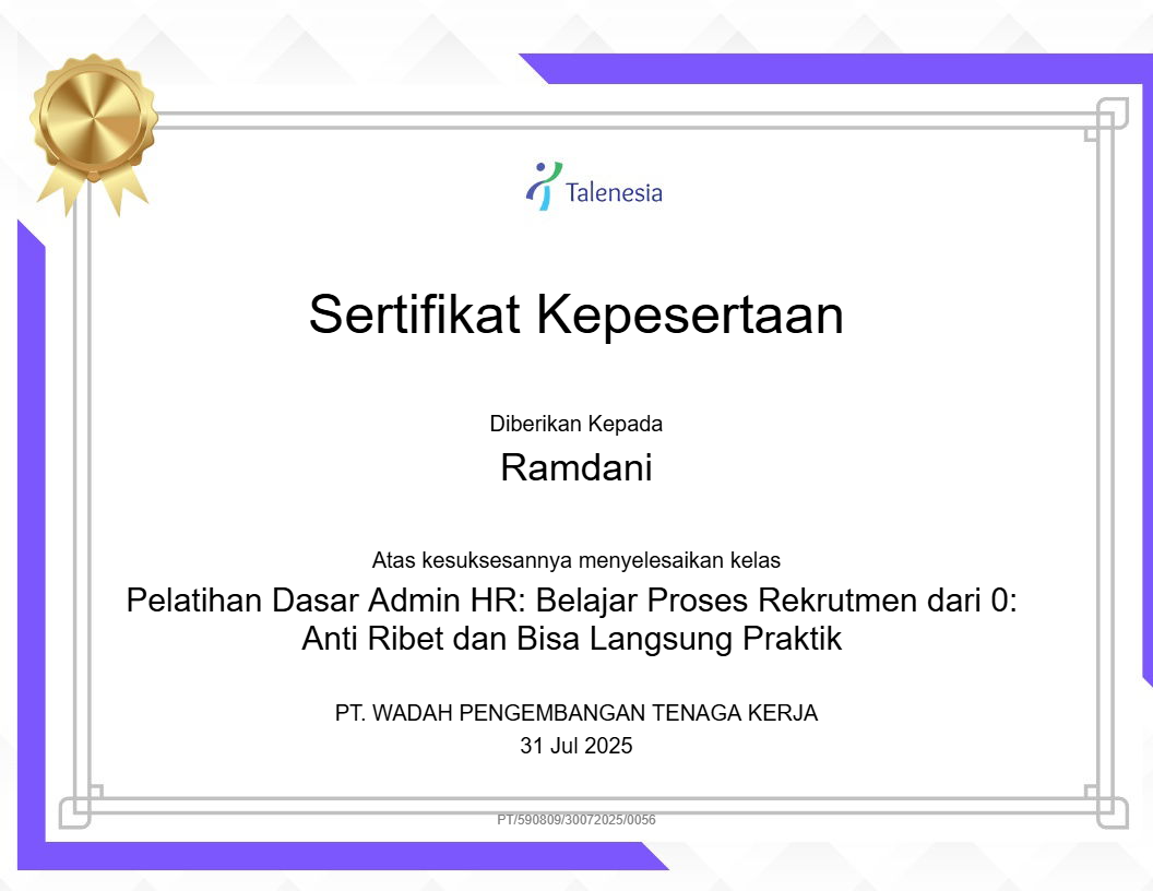 Pelatihan Dasar Admin HR: Belajar Proses Rekrutmen dari 0: Anti Ribet dan Bisa Langsung Praktik |