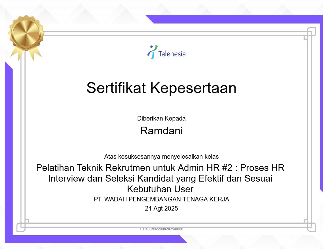 Pelatihan Teknik Rekrutmen untuk Admin HR 2: Proses HR Interview dan Seleksi Kandidat yang Efektif dan Sesuai Kebutuhan User |