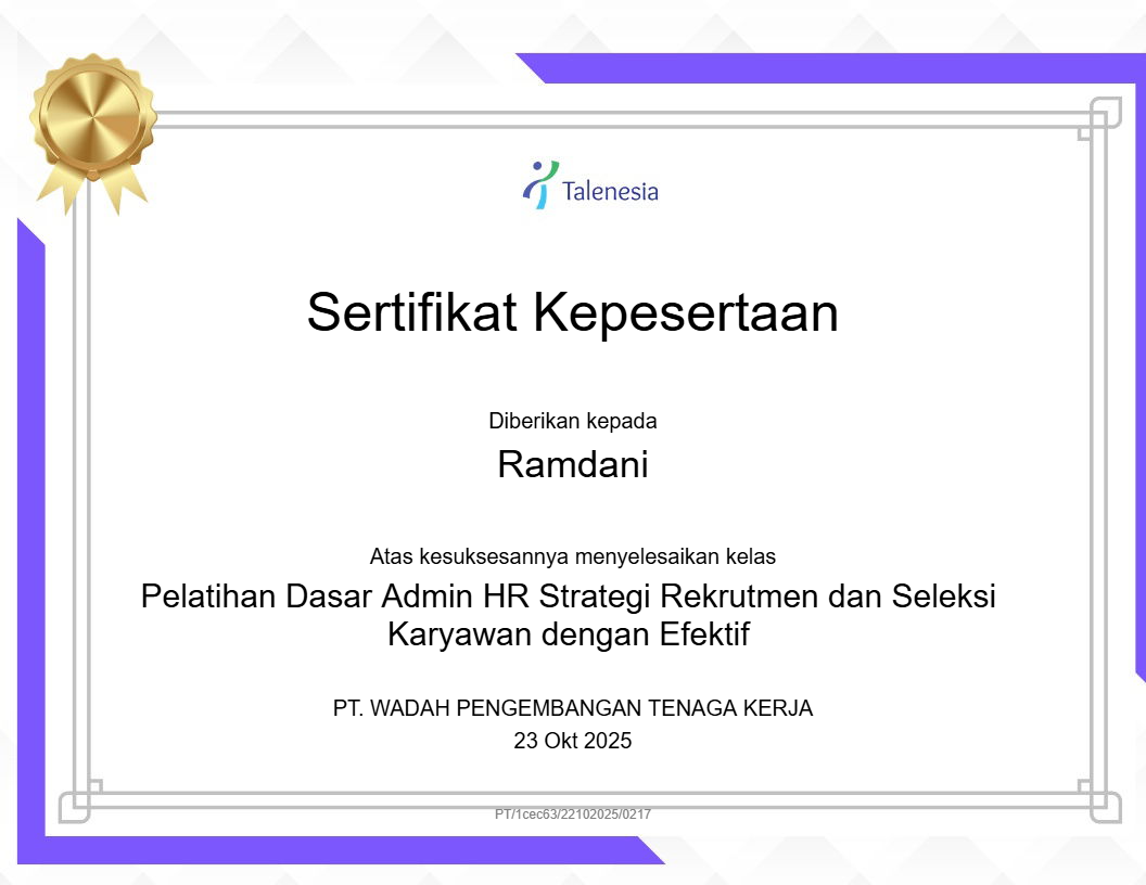 Pelatihan Dasar Admin HR: Strategi Rekrutmen dan Seleksi Karyawan dengan Efektif |