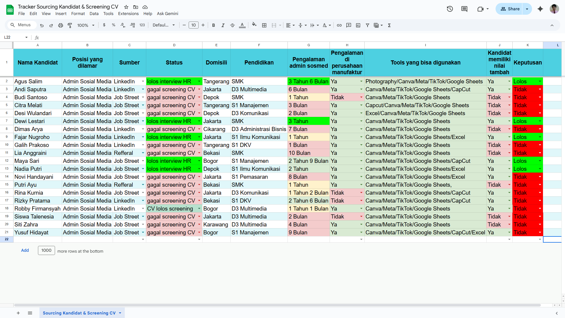 Candidate Sourcing & CV Screening Tracker |