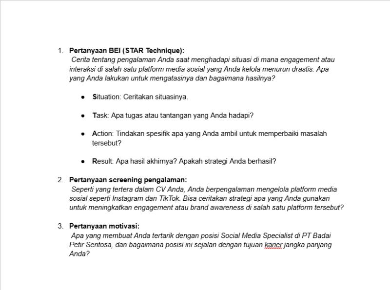 Interview Questions BEI Star with AI |